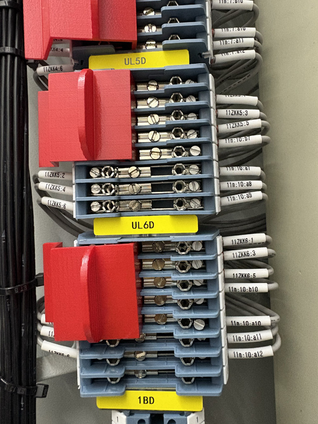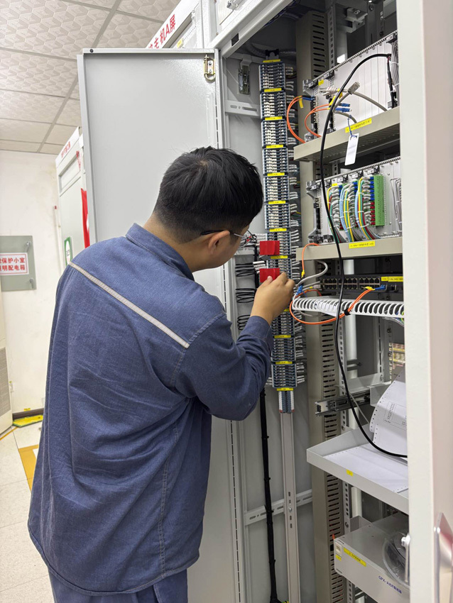 7月19日,在500千伏玉溪变保护小室,南方电网云南玉溪供电局变电修试所的保护专业专家张应坤正在进行500千伏玉溪变电站新能源控制子站装置加装工作。在保护屏柜内,密密麻麻的接线井然有序地连接在端子上,但如果发生接线错误后果不堪设想。仔细观察,可以看见在保护屏柜内有一排形似盖子一样的物件正夹在保护端子上。这就是玉溪供电局变电修试所运用3D打印技术打印的“变电端子防误隔离挡板”。